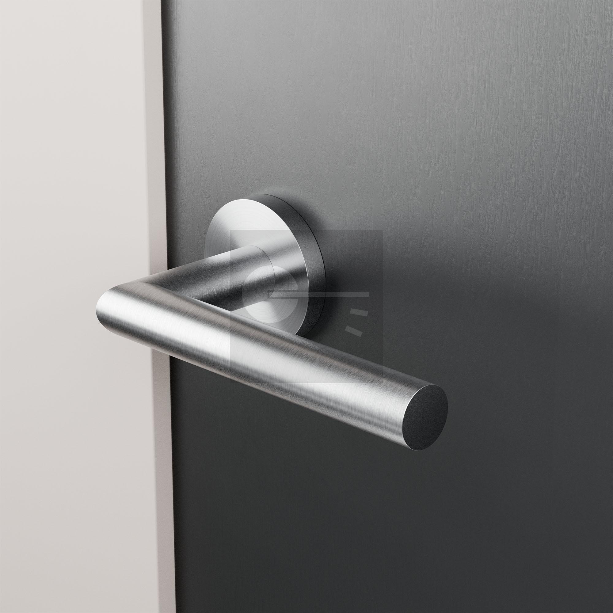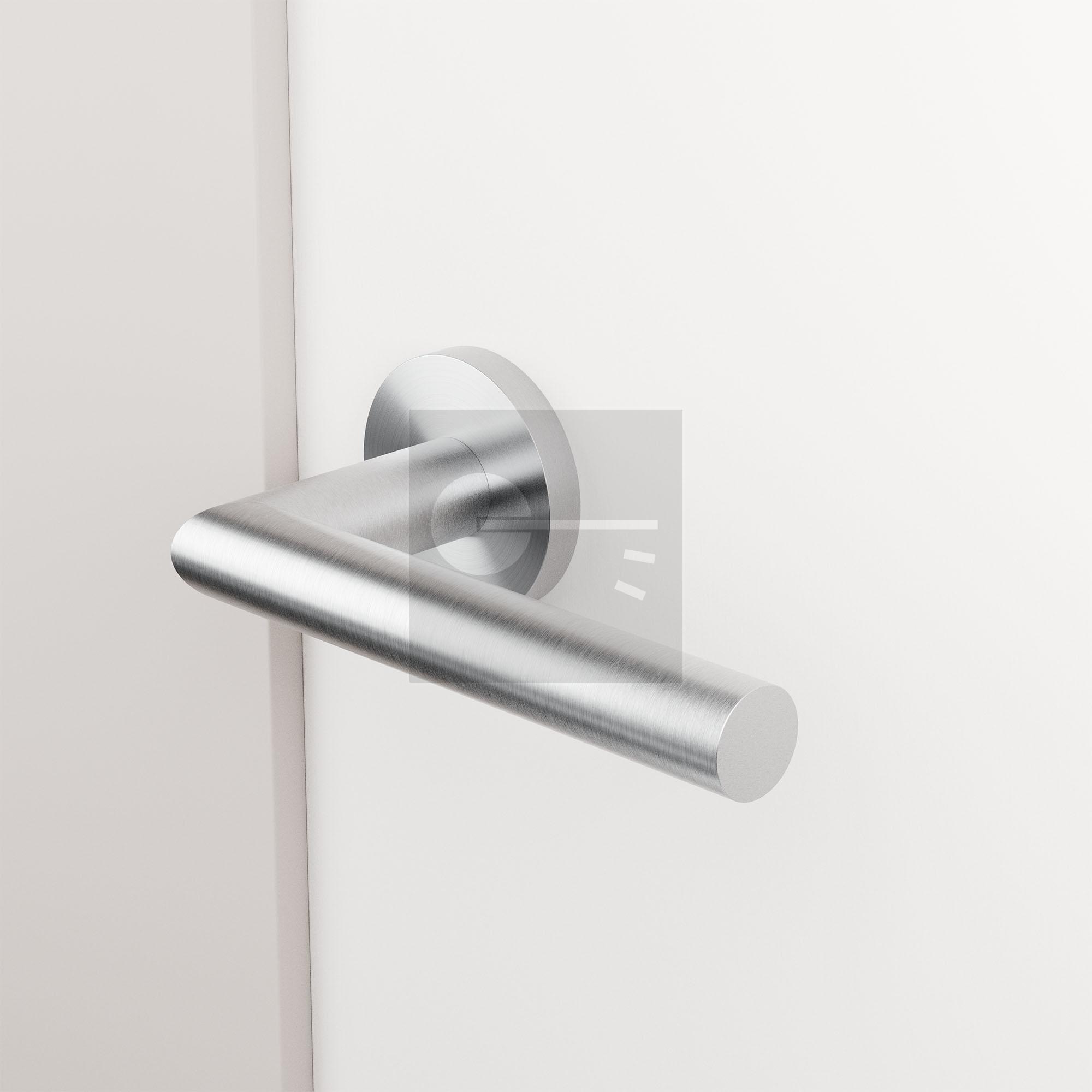 RVS deurkruk Toi op ronde rozet 50x8 mm, links-/ rechtswijzend.