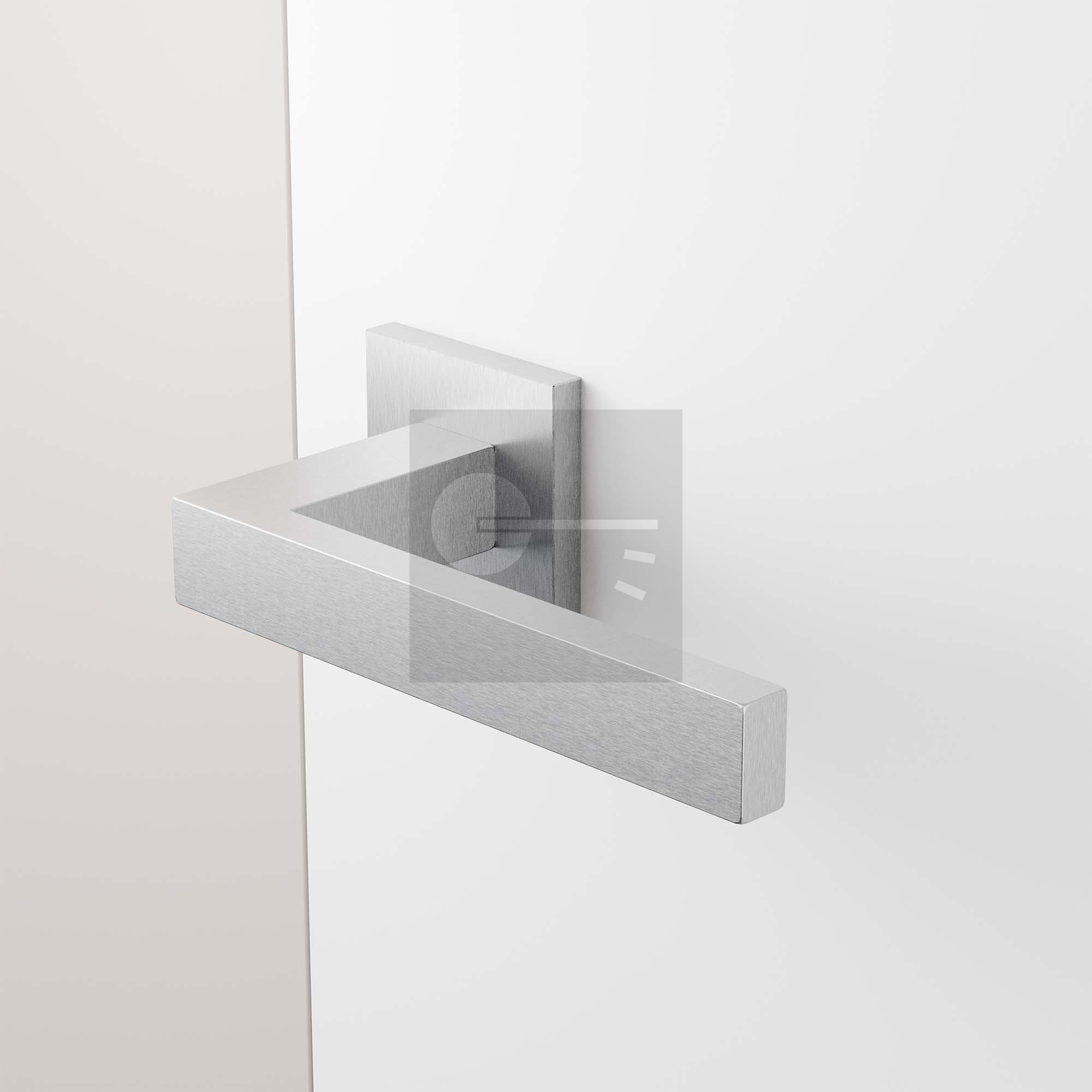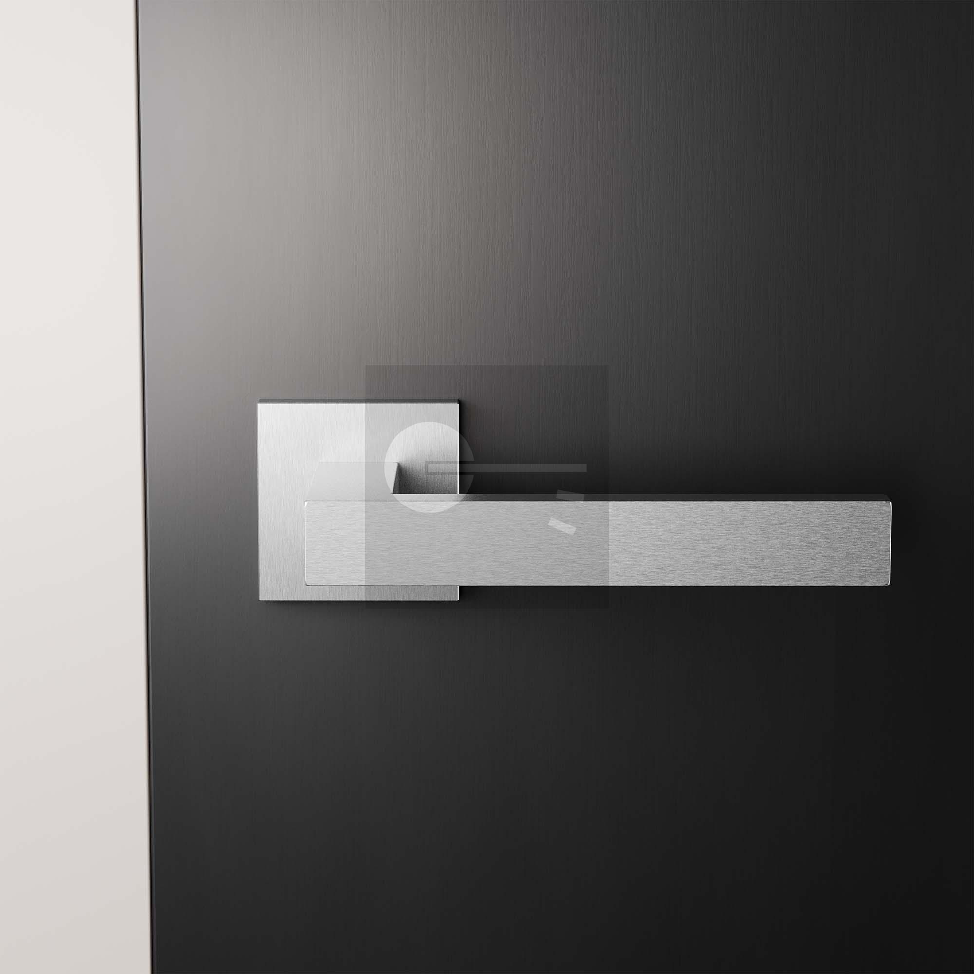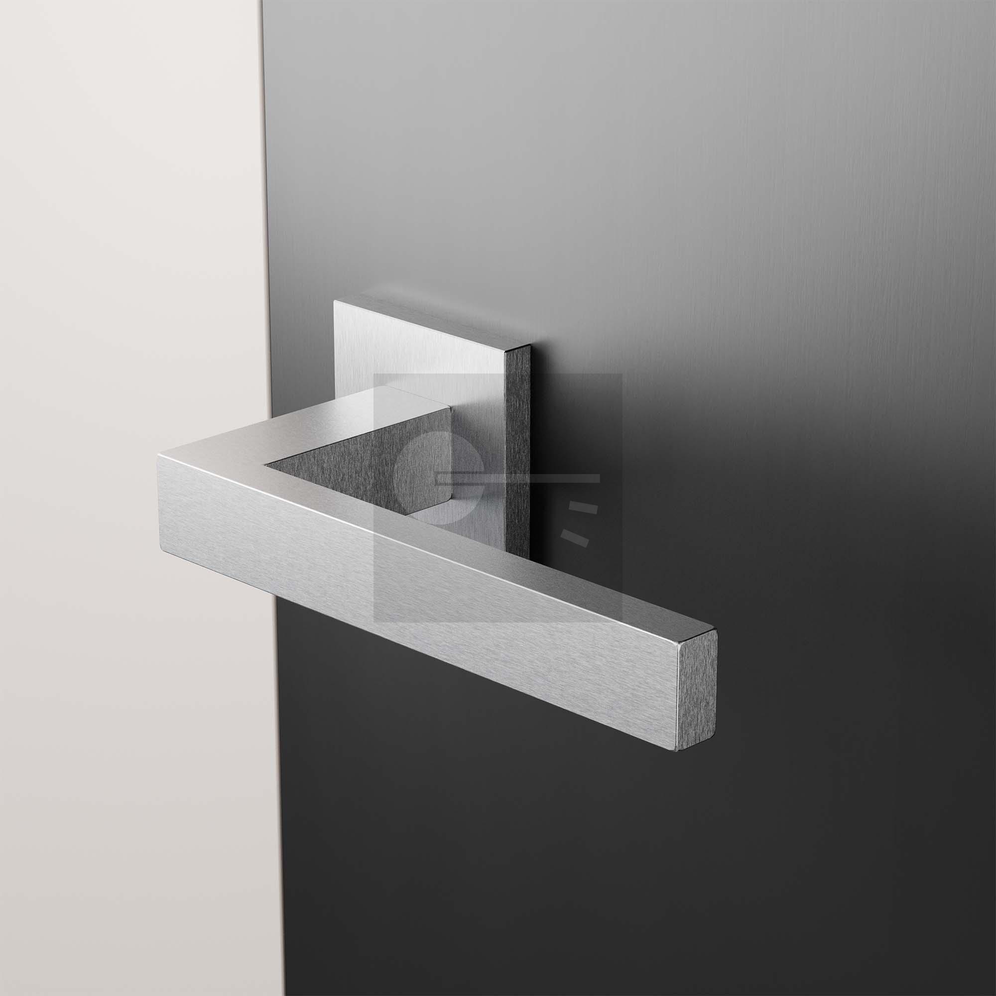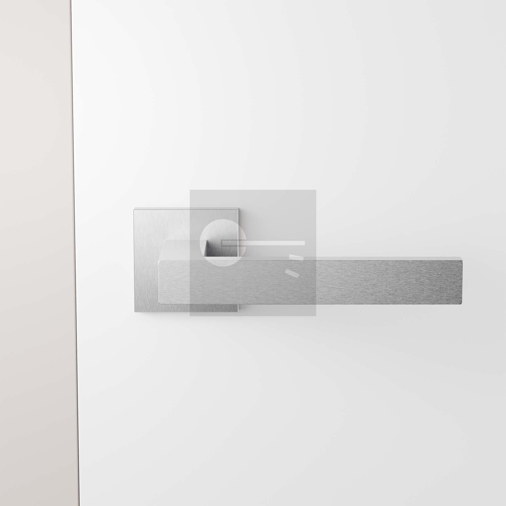 RVS geborsteld deurkruk Zika op vierkante rozet rechswijzend, 50x50x8 mm.