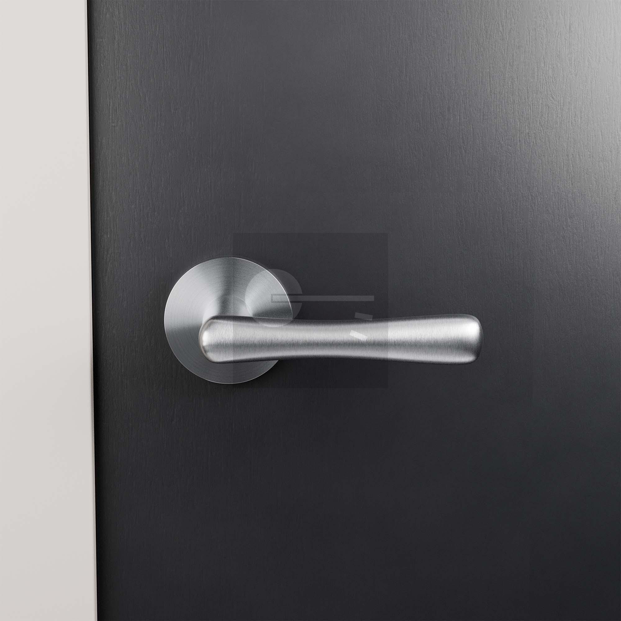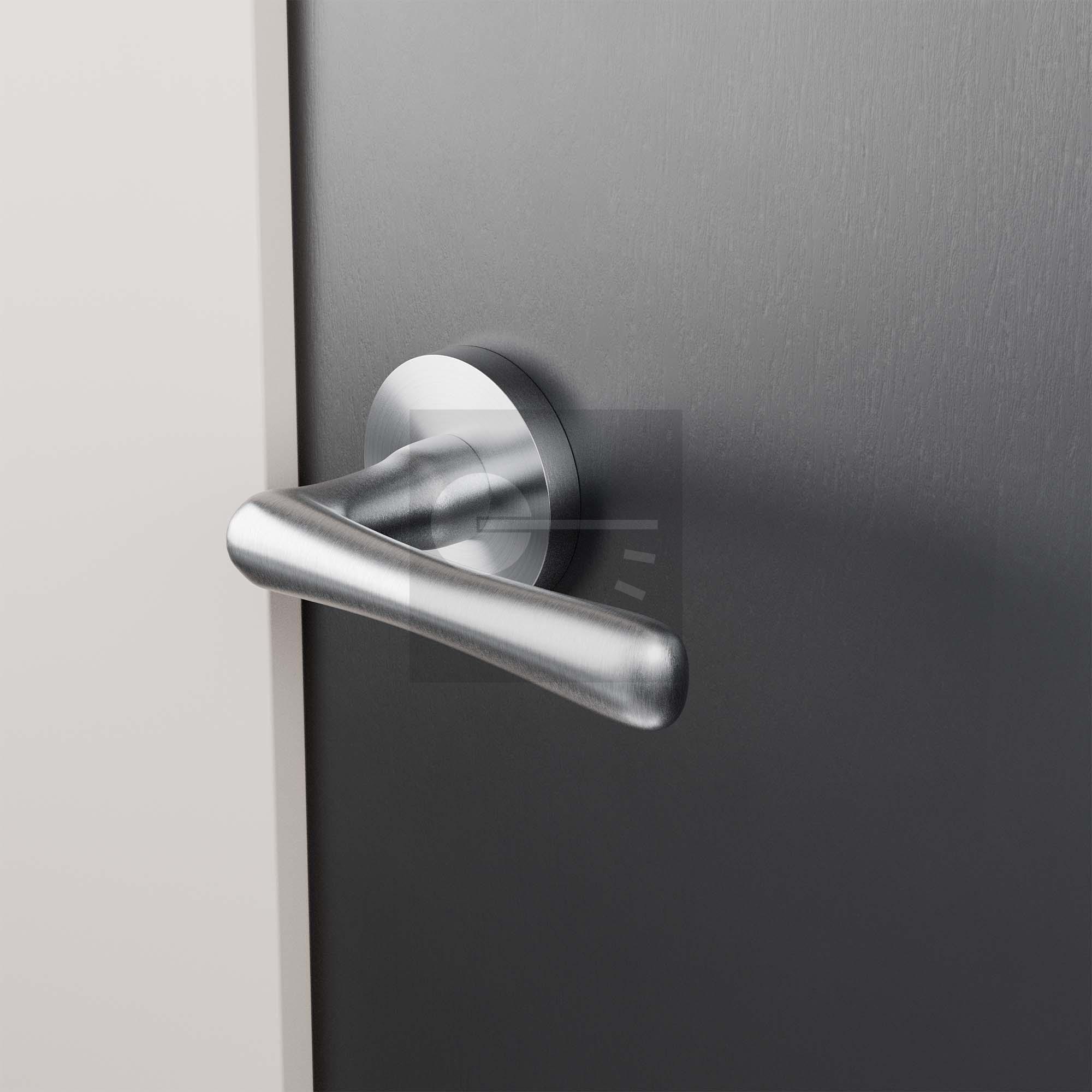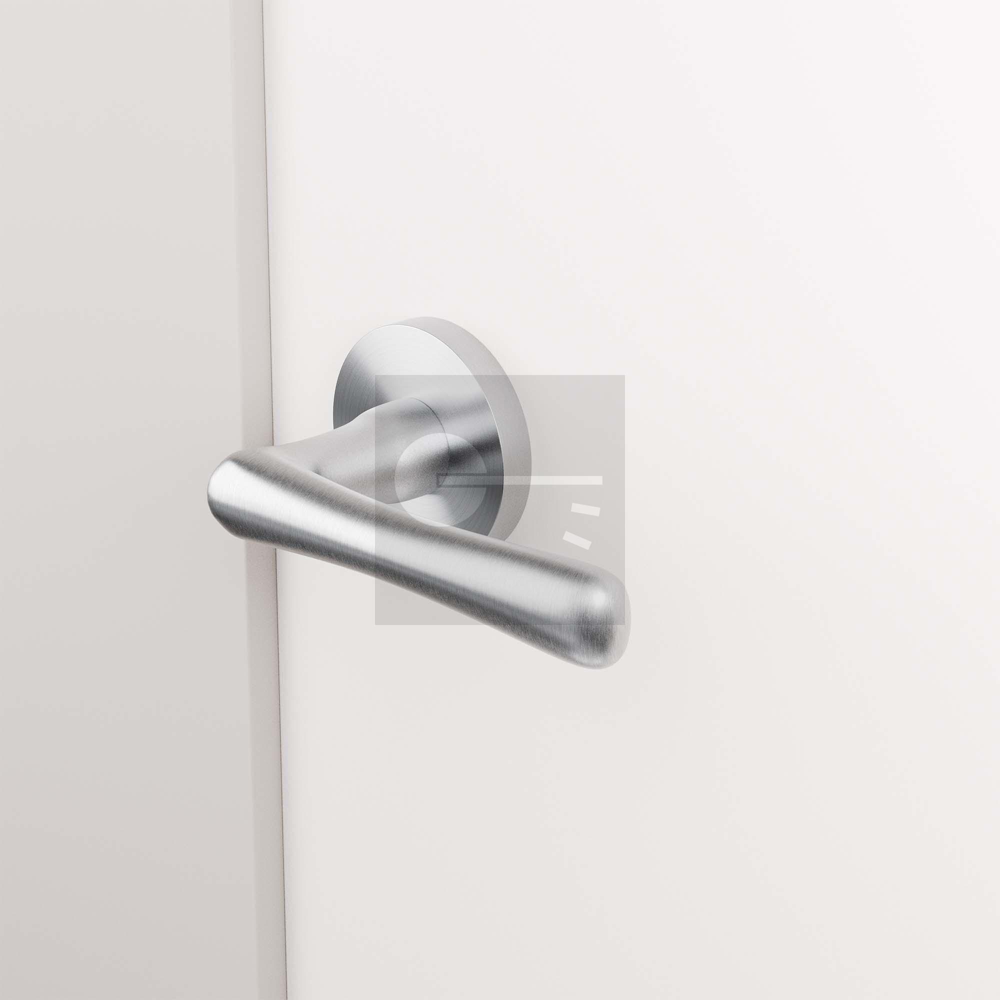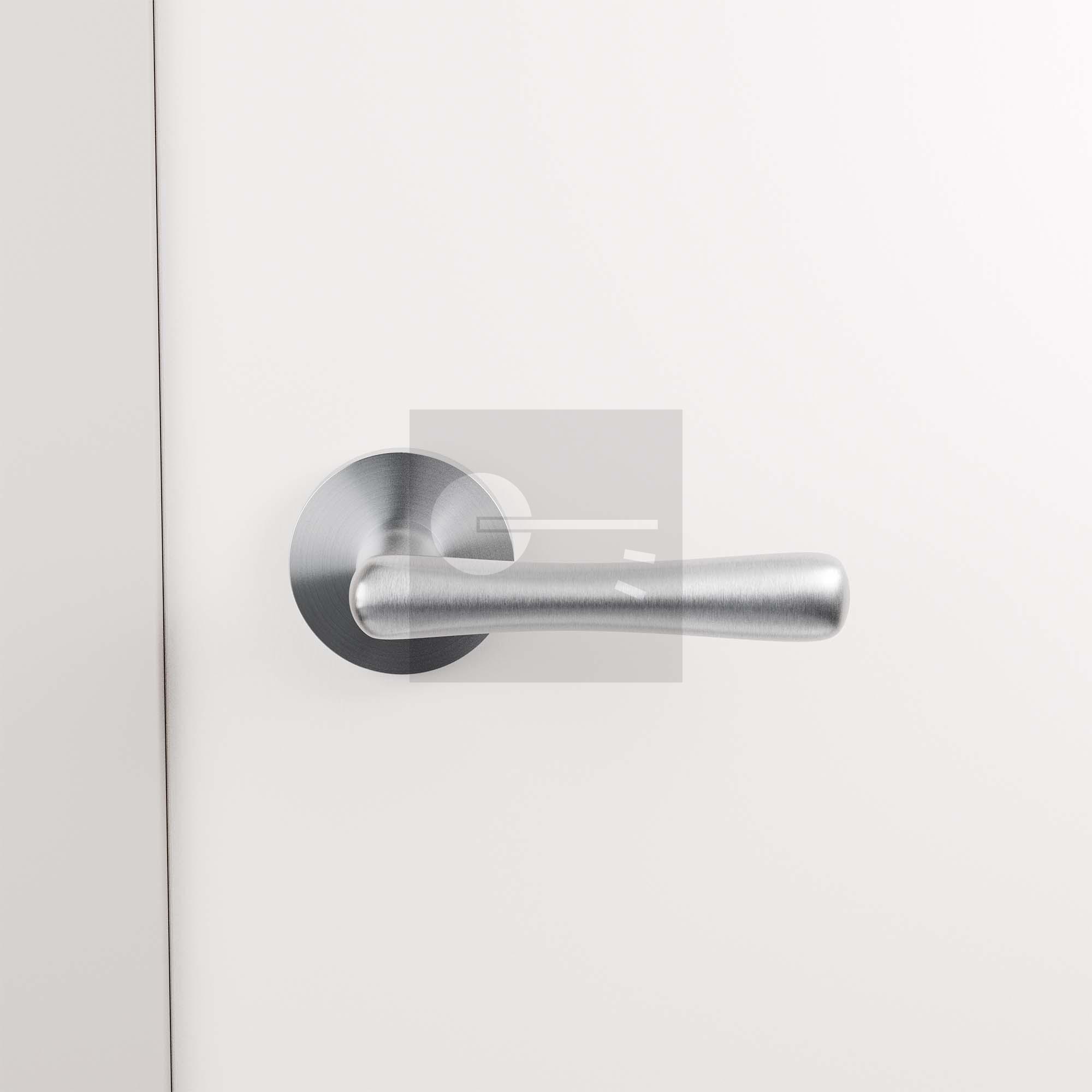 GPF1312.09-05 Pake deurkruk op ronde rozet linkswijzend RVS geborsteld