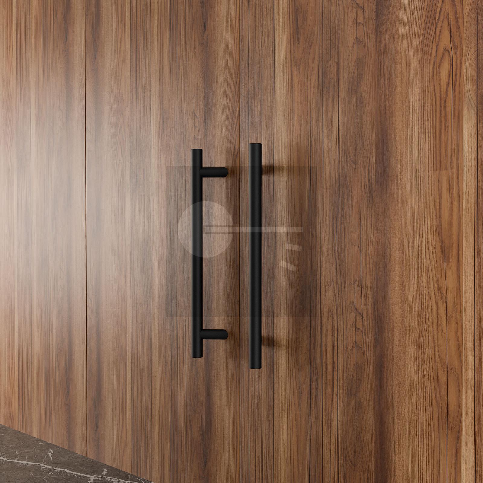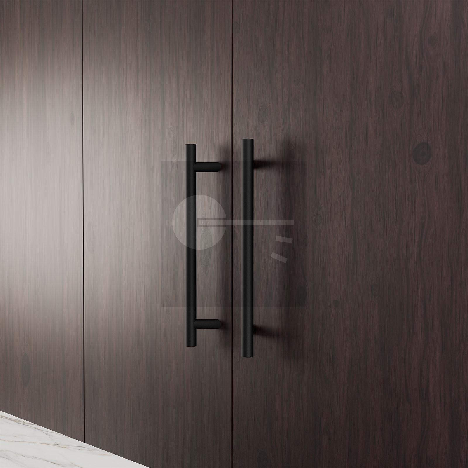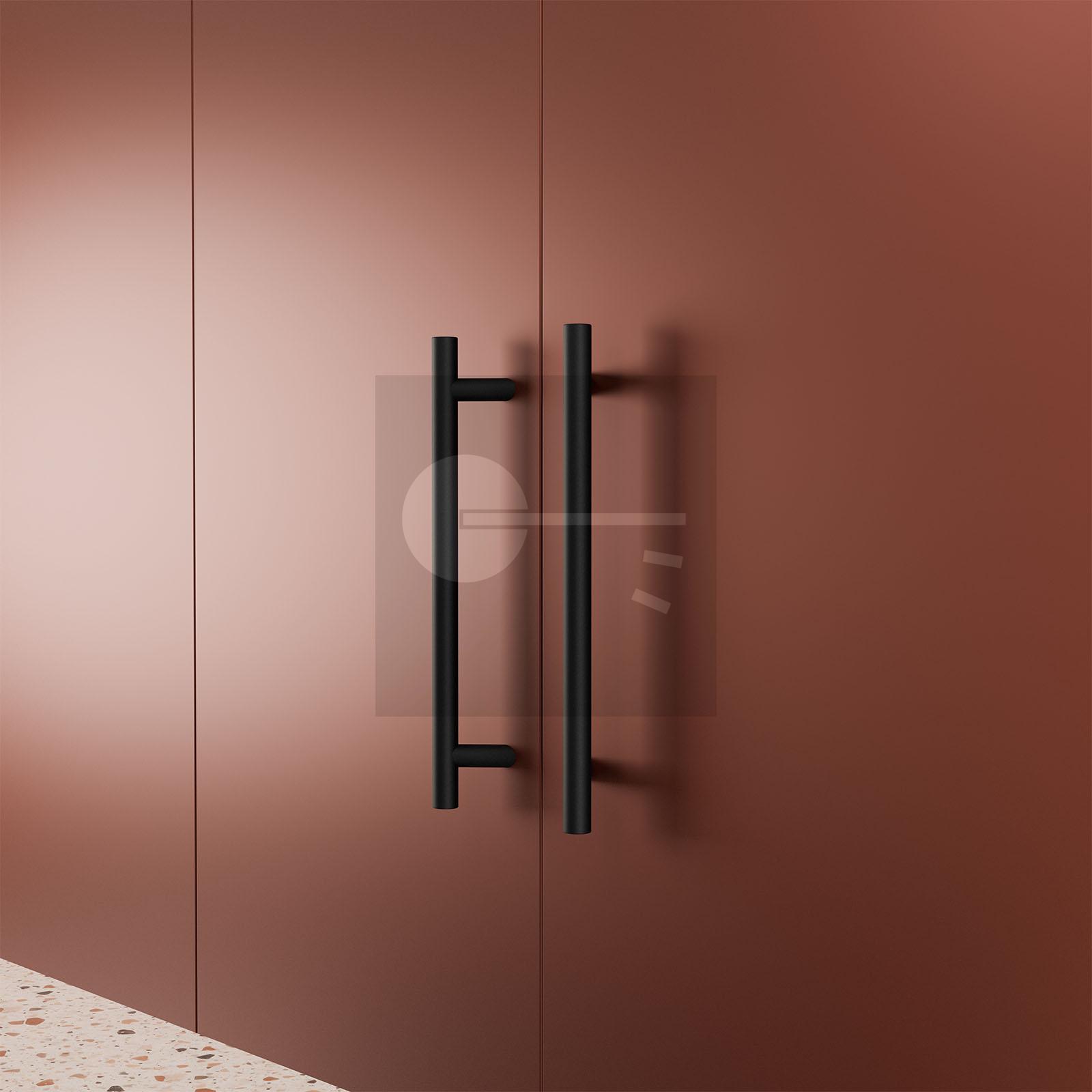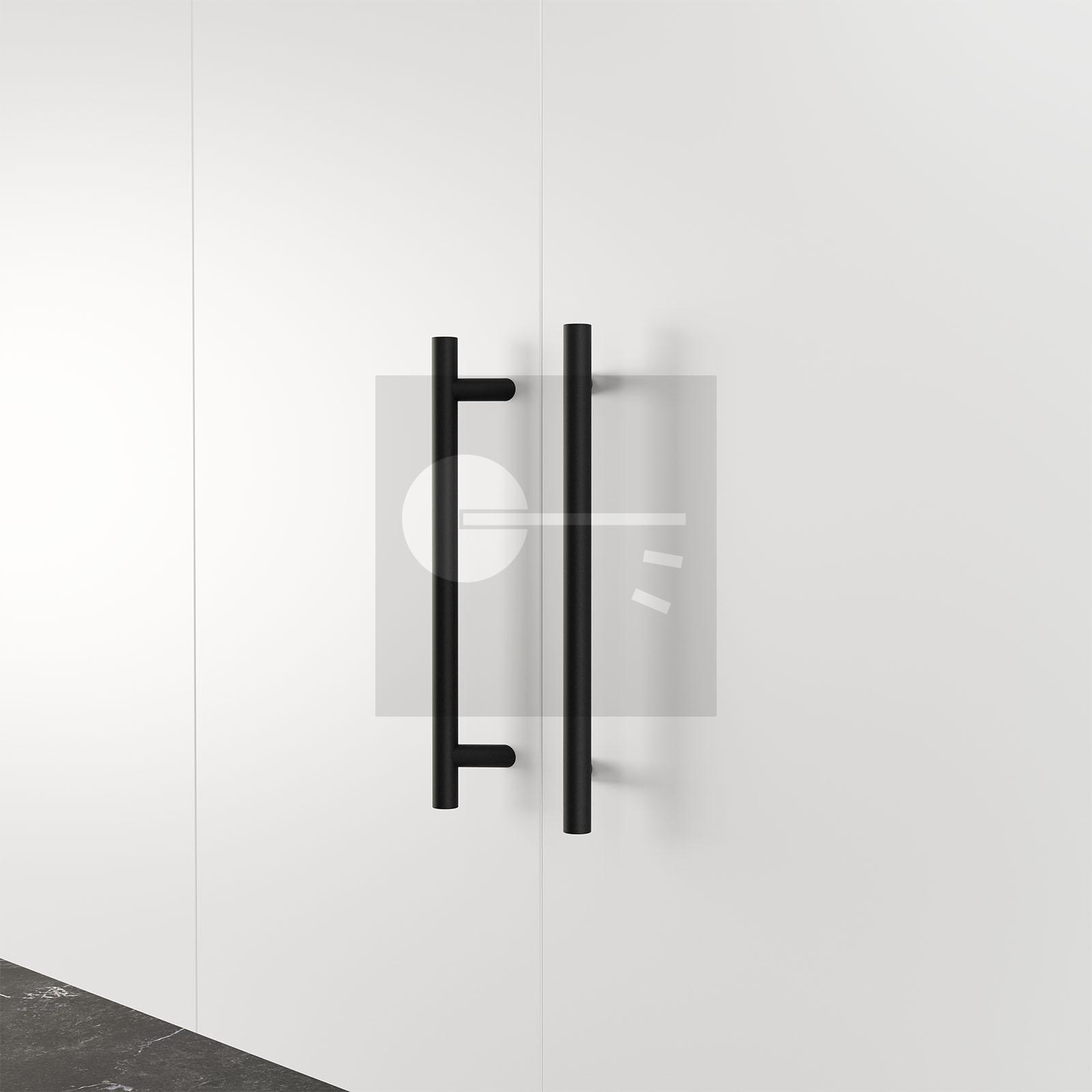 De woorden ´stijlvol´ en ´strak´ omschrijven de T-model deurgreep het beste. De zwarte greep is verkropt, waardoor uw hand goed de ruimte heeft achter de greep. Dit T-model heeft een diameter van 32 mm en een lengte van 450 mm. Zijn hart-op-hart maat is 350 mm. Het voetje van de greep is 22 mm.
