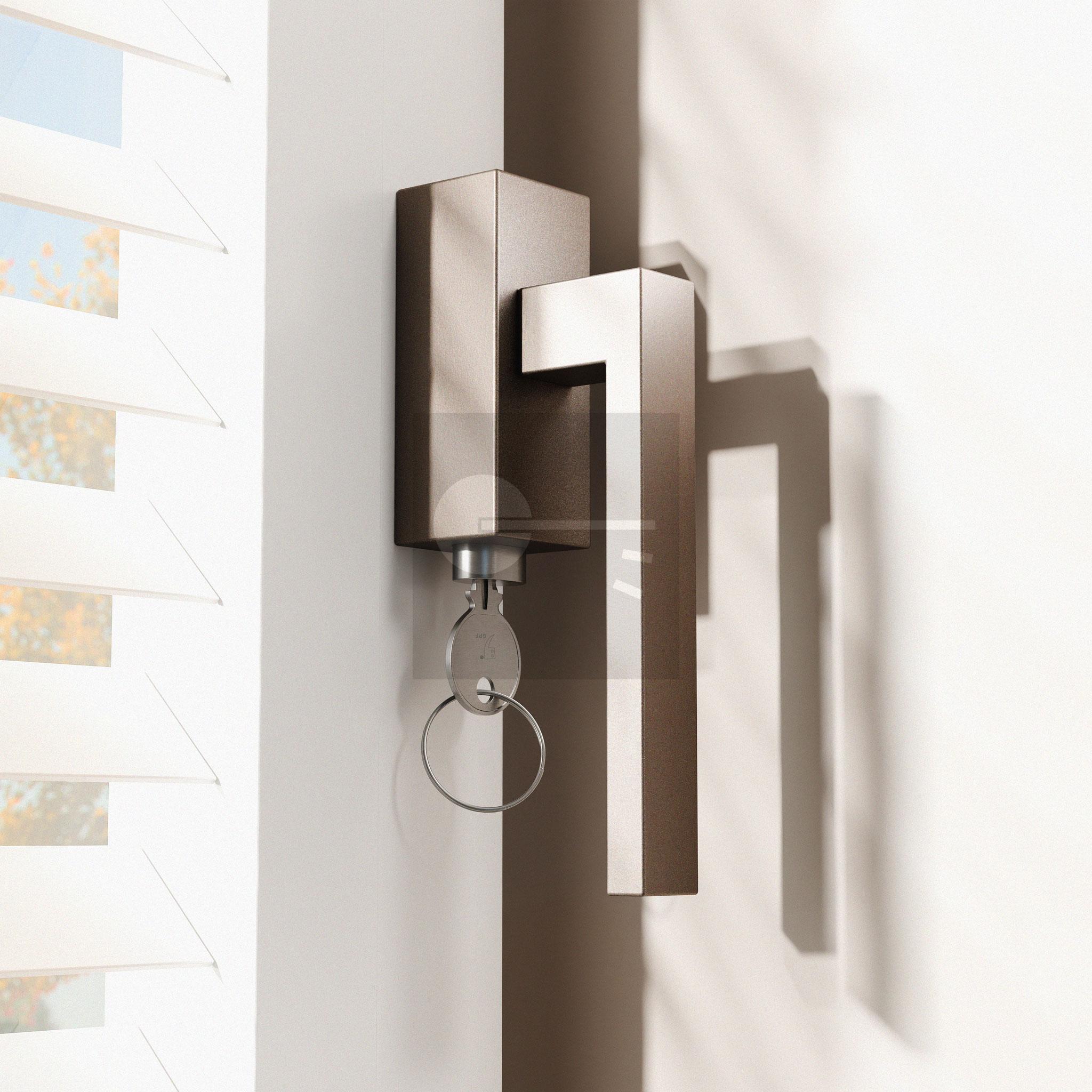 Mocca blend draaikiepmechanisme afsluitbaar rechthoekig 83x34x31 mm SKG*** met stift binnenzijde 32 mm.