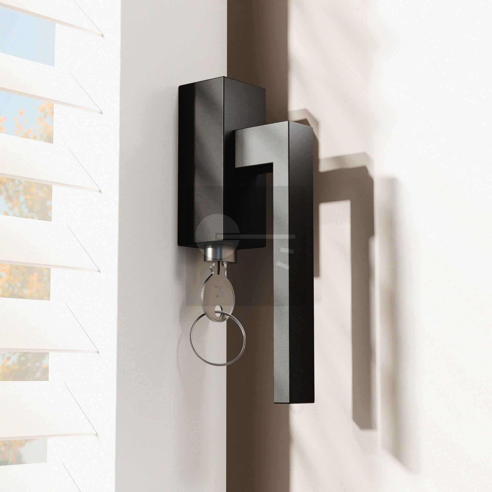 Zwart draaikiepmechanisme afsluitbaar rechthoekig 83x34x31 mm SKG*** met stift binnenzijde 65 mm